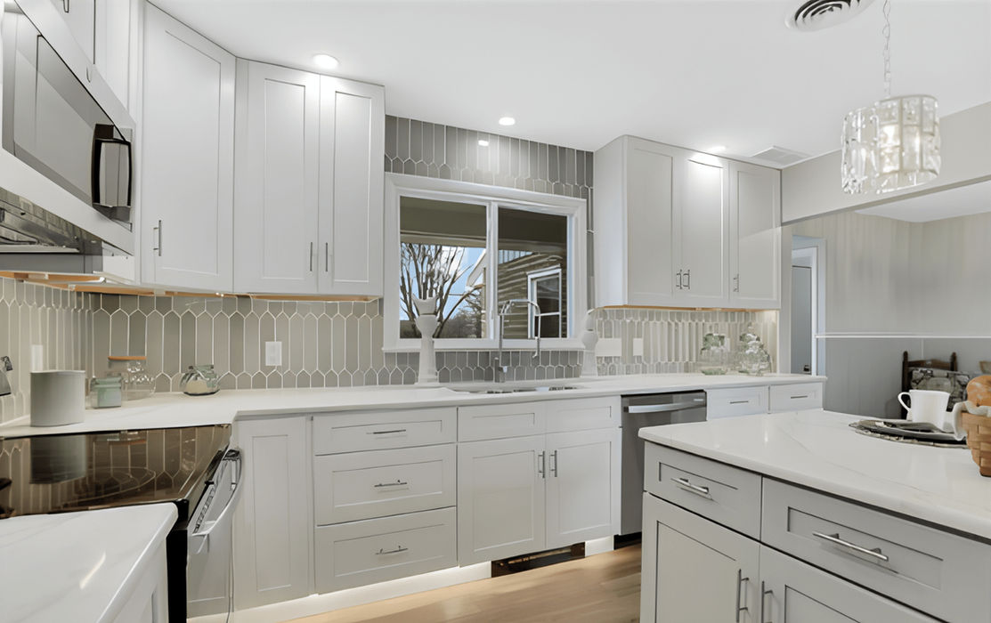 Fully renovated 3-bedroom ranch home. Features include hardwood floors, a spacious eat-in kitchen with quartz countertops, stainless steel appliances, and a partially finished lower level with a family room and laundry.